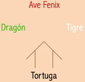La tortuga negra: como su nombre indica es simbolizado a través de una tortuga de color negro. Representa la seguridad y el apoyo en la vida.
